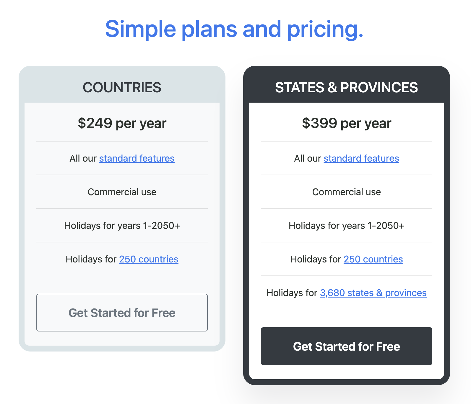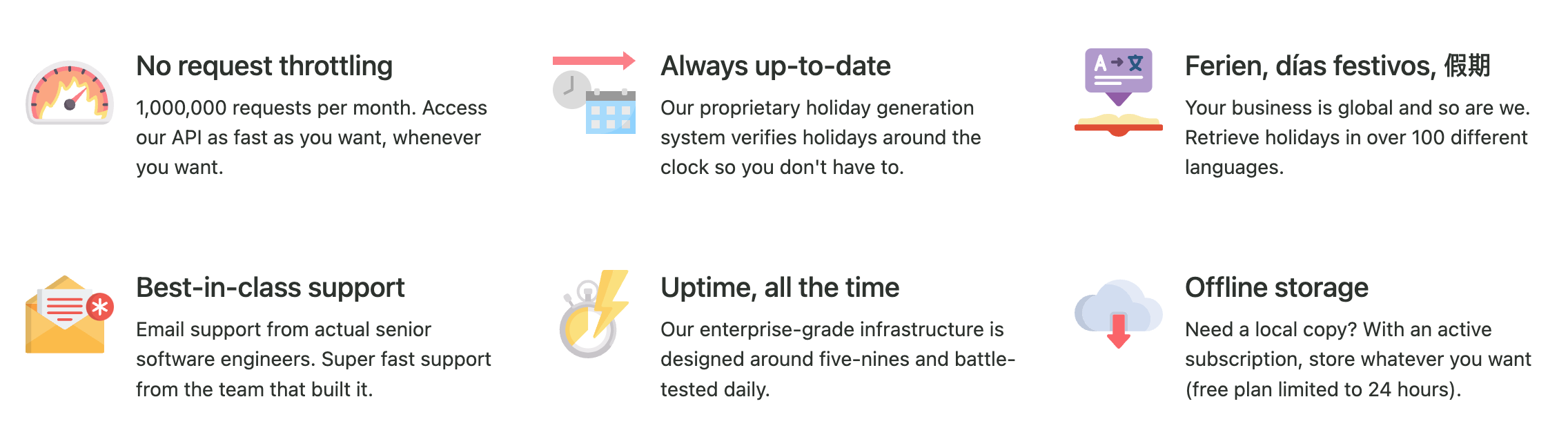 Holiday API는 구독 기반의 서비스 모델을 사용합니다.